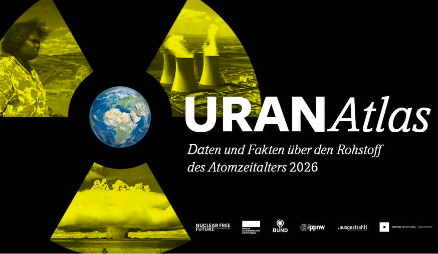 Vom Rohstoff Uran bis zur Atombombe, von der ausbeuterischen Erzgewinnung bis zur gefahrvollen Erzeugung von Strom aus Atomkraftwerken, über die Geschäftsinteressen, über geopolitische Machtkalküle, nicht zuletzt auch über das Totalversagen aller Akteure im Umgang mit strahlendem Müll – der URANAtlas, 2019 erstmals veröffentlicht, zeigt die komplexen Verschlingungen der Atomwirtschaft umfang- und aufschlussreich auf. Anlässlich der 2026 erweiterten Neuauflage stellen wir in unserem aktuellen Podcast Don’t Nuke the Climate dieses äußerst empfehlenswerte Nachschlagewerk vor.